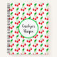 Keep your recipes organised in this lovely notebook that is decorated with an all over pattern of bunches of juicy red cherries, with a white circle front centre that can be personalized with your name and words. The pattern is retro and vintage in style, and is repeated on the back cover. You can choose hard or softback, and also choose the type of paper inside.