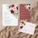 Matching items are available in the same burgundy blush floral collection, including invitations, RSVP cards, details cards, menus, place cards, table numbers, signage, and day-of stationery for a cohesive wedding suite.