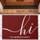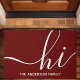 Welcome guests with a warm and friendly greeting using this personalized doormat. Featuring a modern script "hi" in white on a rich burgundy background, this customizable doormat adds a touch of charm to any entryway.