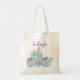 Personalized cactus / succulent tote bag in pretty purples, greens, and blues.
