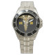 Has heft and feel of expensive stainless steel quartz watches. Good band with safety catch. I removed links, which is easy because engraved arrows show direction to push the linking pins. As always by this seller, the image (a railroad logo) is a perfect reproduction of my emailed image, and is precisely spaced and aligned.
