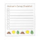 Camp checklist notepad design features original illustrations of a mountain, tree, and summer sunshine. Just personalize with your information.
