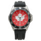 An all Canadian pride celebration stylish classic white iconic maple leaf custom design fashion watch for all festive occasions and friendly gatherings. A great gift to wear or to share. A design statement that is sure to make an impression on formal and on casual occasions. Or perhaps a last minute gift for yourself or for someone special on your list. Personalize this watch with text and a monogram. Message