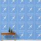 The artwork features fun framed, digital artwork of airplanes soaring high in an elegant pattern on dark pastel cornflower blue background along with two customizable typography fields, which currently read "Soaring High!" and "Captain [name]" for name or other personalization. The design is a fun one for kids' rooms or nursery wall decor. The design allows for customization of the background colour to bet fit with your preferred colour palette.