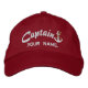 A dynamic personalized Captain cap in nautical red and white style embroidered hat sure to make an impression on, or off the boat. Make this rope anchor design embroidery as unique as you are with your name, your location, or your boat's name.