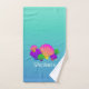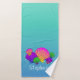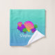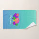 Brighten the day with this lovely personalized bathroom towel set featuring vibrantly coloured pink, yellow, blue, purple, green and orange scalloped seashells with floating bubbles on a turquoise aqua background... Paradise!