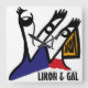 Set against a crisp white background, the artwork showcases a pair of characters with distinctive open triangle heads, primarily drawn in bold black lines with vibrant accents of blue and red.