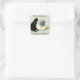Personalized Cat and Books Bookplate Sticker against a sage colour wavy background, with customizable text.