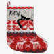 Make sure your kitty gets in on the holiday fun with this custom cat Christmas stocking! Featuring a festive red knit-style pattern with reindeer details, a playful black cat peeking over the cuff, and cute paw prints, this stocking is designed to celebrate your feline friend in style.