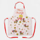 The apron is adorned with festive accents in green, red, and yellow, creating a cheerful holiday atmosphere.