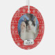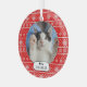 Cute personalized cat Photo Ornament featuring a red snowflake knit sweater patter. Just add your pet's name & photo and you're all set to go..