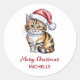 Personalized Cat with Santa Hat Christmas Classic Round Sticker