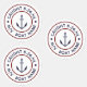 Personalized catch of the day with date and boat name anchor logo waterproof labels. White circle emblem with nautical navy blue anchor and text, maroon boarders and white background.