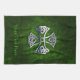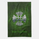 A bold chrome silver Celtic cross on a gorgeous green background. Personalize the text with any name or message you like.