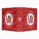 The Chadian LOVE FLAG. Like the others in Auntie Shoe's The LOVE Series, the word LOVE is featured in red letters inside a white, fractal-style circle. The circle sits on a red, fractal-style background. Perfect for Valentine's Day or any special time.
