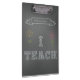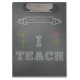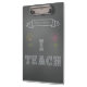 Chalkboard look clipboard with chalk style text that reads I Teach, two doodle flowers of pink and yellow with green stems and leaves, and a chalkboard banner that you can customize with your name! This chalkboard clipboard is great for teachers of elementary school, preschool, even high school!