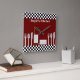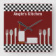 Personalized Black and White Checkerboard Kitchen Utensils Clock
