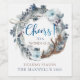 Beautiful holiday wine bottle label with ability to personalize text for Christmas or New Year message. Gorgeous watercolor blue floral holiday wreath with "Cheers" phrase inside in blue watercolor Script typography. Four text areas with ability to customize message as you like, our options are merely a suggestion, feel free to customize label to suit your needs. Part of our "Blue and Silver Watercolor Christmas" collection with a variety of coordinating products available.