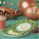 Wisconsin Party Paper Plates with shape of Wisconsin in swiss cheese and footballs.
