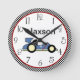Up for sale is this "Race Car" clock. Complete your child's room with this adorable clock. You must change the name yourself by clicking on the customize it button. You can also change the number on the race car if you wish.