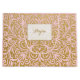 This gorgeous gift bag is made up of a glamourous pink and gold background. Ornate pink flourishes are scattered across the gold design, and a white frame dotted with gold can be personalized with any name in elegant gold typography. A very chic and girly look that will be perfect for any formal, French style, or elegant wedding. Graphics by Mygrafico.