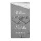 Personalized chic beach wedding wine bottle labels. Elegant black and white photo design with drawing of entwined hearts in the sand. Stylish script typography for names of bride and groom. Use as classy table decoration or thank you favor for guests at the party. Includes name or monogram plus date of marriage. Romantic coastal image / seaside theme with love symbol.