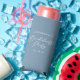 A chic dusty blue bachelorette party seltzer can cooler for a summer coastal weekend by the sea. Personalize these light grey blue decor with elegant minimalist typography to match your tranquil bridal color scheme.
