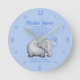 Personalized Christening Date Baby Blue Elephant Round Clock