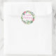 Personalized Christening Sticker with Pink Flowers