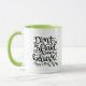 A script typography design with green leaves and a Bible Verse from Mark 5:36 Don't be afraid only believe. Personalize with your own message on the reverse side of the mug.