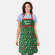 A cute, modern Christmas apron design with retro-inspired illustrations of ornaments, stockings, candy canes, Christmas trees & snowflakes. This can be customized with a person's name, initials or your own message. A fun & unique Christmas gift in traditional Christmas colours