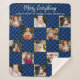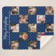 Personalized Christmas Blue Plaid Photo Collage Sherpa Blanket