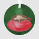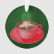 Illustration of cappuccino art with a Christmas tree in the foam of a red cup. Text is customizable.