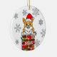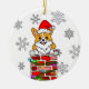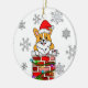 Hand drawn cartoon Corgi dog breed with Santa Hat on coming up the chimney Christmas stickers with personalized Christmas ornament.