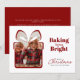 Capture the joy of the holiday season with this charming Christmas card. Featuring a delightful gift box cutout to showcase your favorite family photo, this card is perfect for sending warm wishes to loved ones. The bold red text proclaims "Baking Things Bright," adding a festive and playful touch. Below, a classic "Merry Christmas" script is accompanied by your family's name, making it a truly personal greeting. The clean white background and elegant red accents create a sophisticated yet heartwarming design, ideal for sharing your holiday cheer and creating lasting memories.