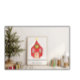 This cute Christmas art print features an adorable, red gingerbread house. It is adorned with a bright, yellow star at the top and a cute Christmas wreath on the front of the house.