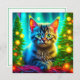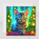 Pretty kitten sitting in front of lit up Christmas trees personalized Christmas card.