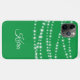 Illustrated sparkling string lights and your name in fancy type, accent this green iPhone Case, making it a perfect accessory or gift this holiday season. This case can easily be personalized without a monogram or name if preferred.