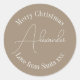 Keep it simple with this Christmas gift label sticker. It is in a trending boho beige colour. It has space for you to add your name and the message, "Merry Christmas Love from Santa xxx" in stylish typography. To personalize simply add your name using the personalize this text button. The design is fully customizable and you can change the rest of the text by using the personalize this button or change the colour or font by using the design editor tool. Perfect for your gift wrapping this holiday season. Merry Christmas! If you need help with personalization, matching products, or for a custom design contact me via zazzle chat or email: ursuladawnmoon@gmail.com