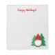 Personalized Christmas notepad for cute gnome. Custom writing note pads with cartoon troll drawing, snow and green trees. Personalized memo pad design for home or office. Trendy school / office supplies for kids and adults. Fun script typography template for name or title.