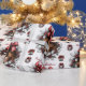 Add a touch of holiday cheer to your projects with this Christmas-themed pattern. Featuring a central decorative holly wreath adorned with detailed holly leaves, bright red berries, and a bold red plaid bow, this design exudes seasonal charm. Surrounding the wreath are festive accents, including wrapped gifts with red ribbons, bells embellished with greenery and bows, and the phrase "Merry Christmas" in elegant red script. Perfect for fabric, gift wrap, scrapbooking, or digital designs, this seamless pattern radiates warmth and joy for all your holiday creations.