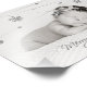 Beautiful and elegant Christmas photo design with a picture of a newborn and silver garland with Christmas decoration, silver Christmas balls, silver snowflakes and stars.