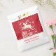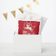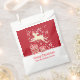 Fun reindeer in the snow add your own text or name Christmas party thank you gift bag in shades of red and white. Perfect for your Christmas food favours. Bold fun design featuring a reindeer jumping over boxed gifts in festive colours. Personalize with your our greeting and family name, currently reads Happy Christmas from the Dickens family.