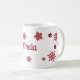 With a little vintage inspiration this cute personalized Christmas mug with its red and white snowflakes is perfect for the holiday season.