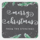 Personalized "Merry Christmas" Stickers with glittery snow on pine branches and a chic chalkboard background. Customize with your own family name. Perfect for gift wrapping decoration, envelope seals for Christmas cards, or favour decorations at a Christmas party. [Note - elements of this design will print to look like glitter, but there is no actual glitter on the card.]
