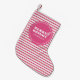 Add a pop of festive charm to your mantel with these personalized Christmas stockings, featuring pink stripes and the cheerful phrase "Merry & Bright." These custom stockings are perfect for creating a coordinated look for your family during the holidays.