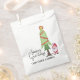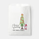 Festive customizable holiday favour bag features Christmas tree & gnome with "Seasons Greetings" message. Personalize with your name or other message.