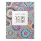 Colorful mandala geometric personalized class subject notebook featuring a customizable student name and editable subject label. This vibrant spiral notebook is perfect for back-to-school supplies, middle school, high school, and college note-taking. A trendy boho-inspired school notebook that keeps every class organized in a stylish and fun way.