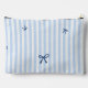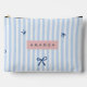 Personalized Classic Blue Pastel Striped Bow Accessory Pouch
