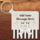 The product design features bunny twins and off-white ribbons. This adorable animal cartoon with stripes makes a cute, classic modern, and unique square keychain with personalized text for kids.